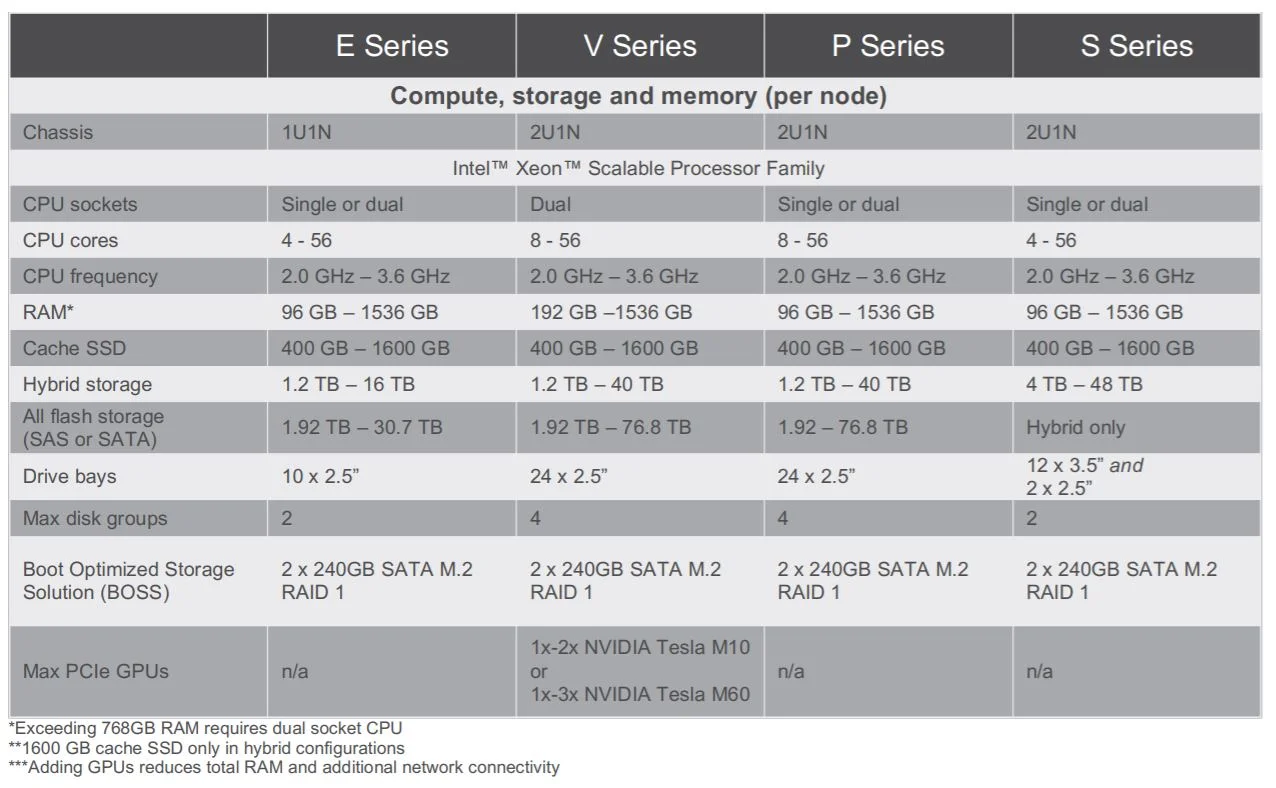 Thanks to our friends at Dell EMC, we had 4 x VxRail P570F’s in the office recently. The P-series are classed under the Performance Range of boxes and its often time what is proposed for demanding workloads (refer to datasheet excerpt below). Again, the performance of any system (regardless of classifications) are highly dependent on the configuration that it is built on.